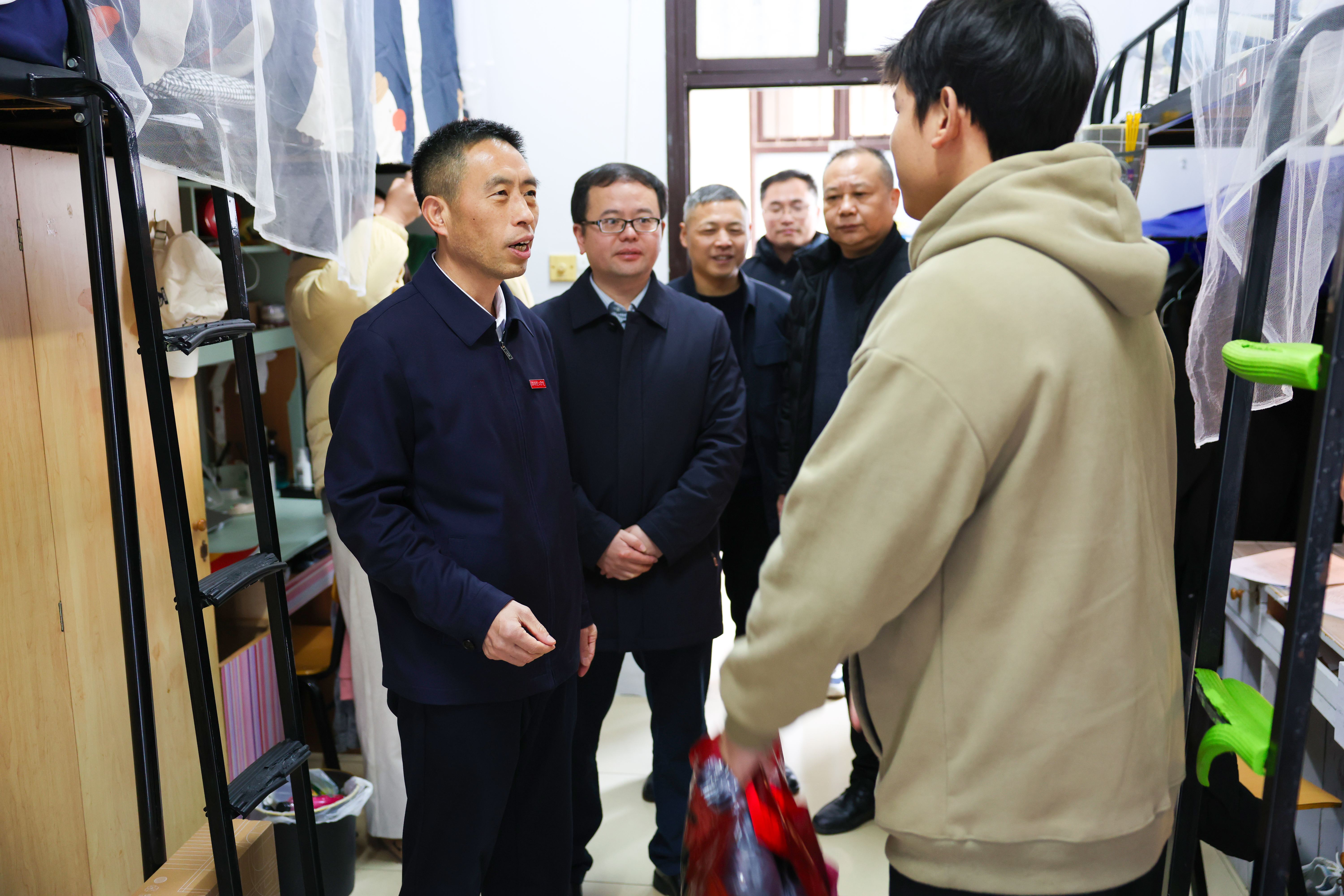 校园网讯 12月31日,校领导张国云、曾祥君、谢贵辉、徐小立、徐振祥、汤小红、丁跃浇、刘长辉、胡文静,在相关部门和学院负责人的陪同下,携带新年祝福深入学生宿舍,亲切慰问学生,并为他们送上御寒棉衣与慰问金。在走访过程中,校领导们详细询问了同学们在校的学习与生活状况,鼓励他们多与师生交流,关注自身身心健康,并在遇到困难时及时向学校求助。同时,领导们也勉励同学们努力学习专业知识,拓宽视野,做好职业规划,争...