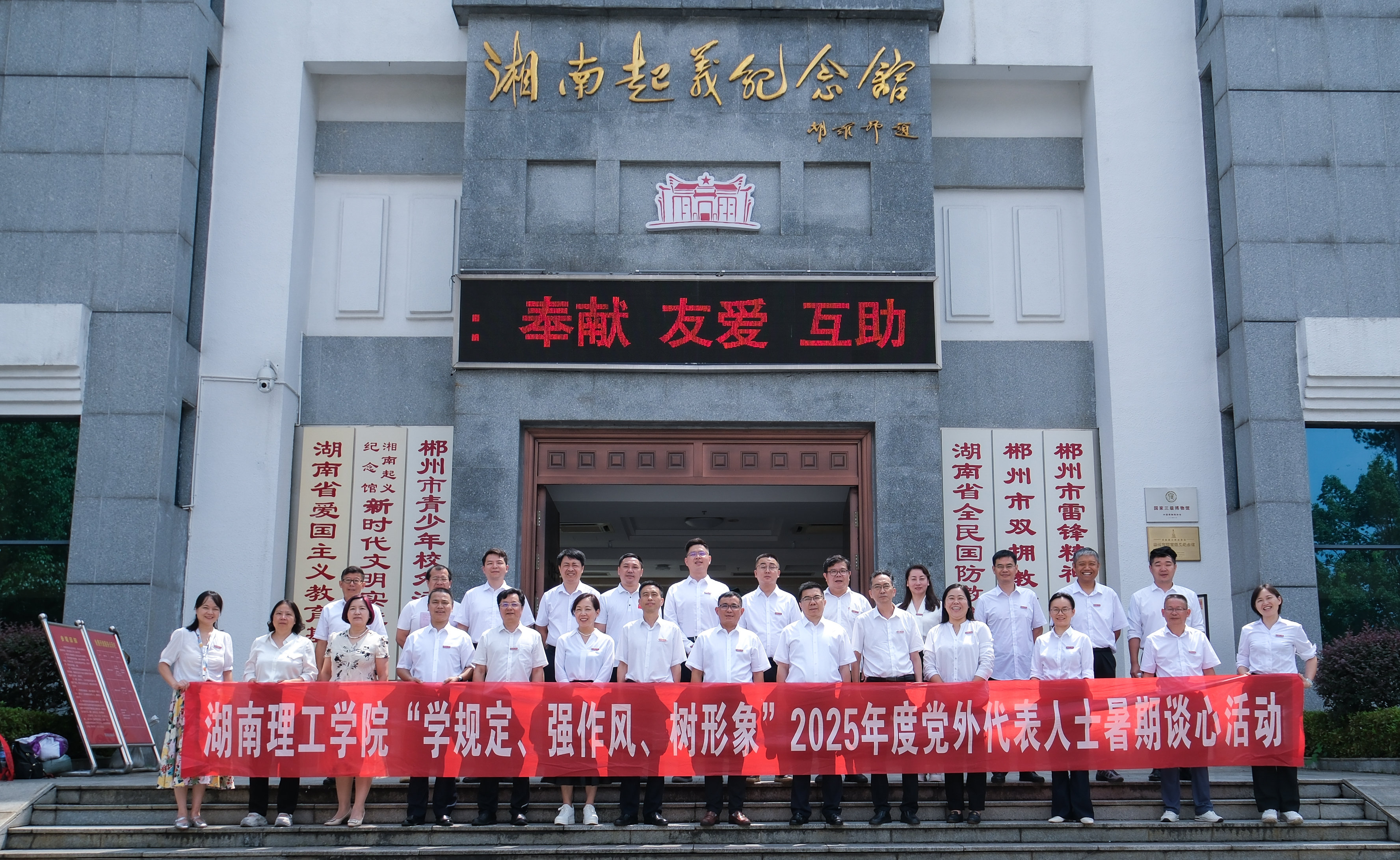 校园网讯 为进一步强化思想政治引领,深入贯彻落实“学规定、强作风、树形象”主题教育要求,进一步强化党外人士纪律规矩意识,加强党外代表人士队伍建设,7月28日至30日,学校组织党外代表人士,赴郴州开展以“学规定 强作风 树形象”为主题的暑期集中谈心活动,通过专题学习、实地研学与深入谈心相结合的形式,着力提升党外人士的政治素养与履职能力。校领导张国云、谢贵辉、徐小立、徐振祥、汤小红、丁跃浇、胡文静和学校民...