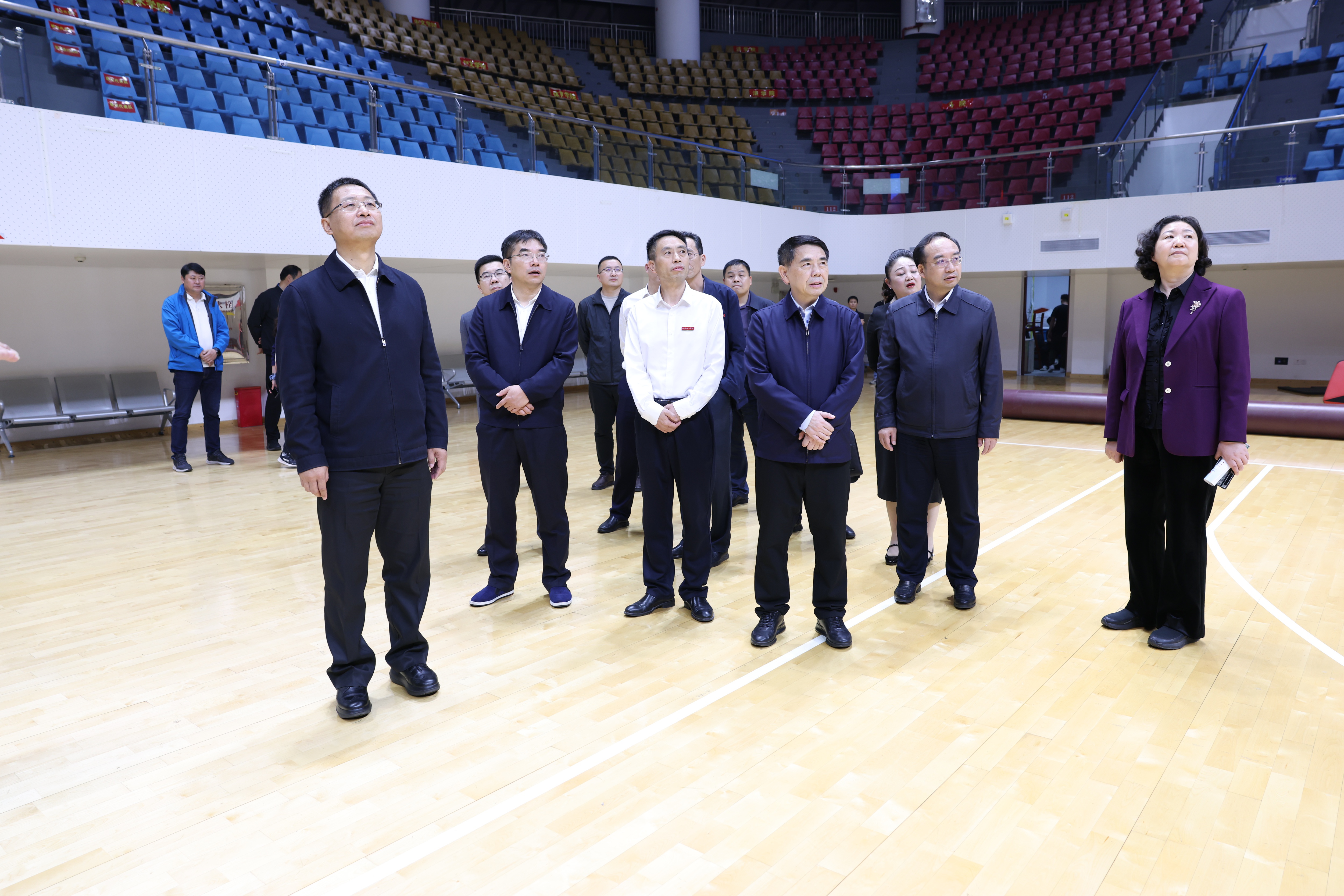 校园网讯 10月29日晚,省委常委、岳阳市委书记谢卫江和副省长蒋涤非来校,调研中华人民共和国第一届青少年三大球运动会筹备工作情况。在体育馆,谢卫江、蒋涤非一行检查了篮球场地建设改造情况,现场听取工作人员的情况汇报。在随后举行的三大球运动会开闭幕式筹备情况汇报会上,谢卫江、蒋涤非听取了相关情况汇报。湖南省人民政府副秘书长陈旌,湖南省体育局党组书记熊倪,湖南省体育局副局长张连标,岳阳市副市长张世愚,岳阳...