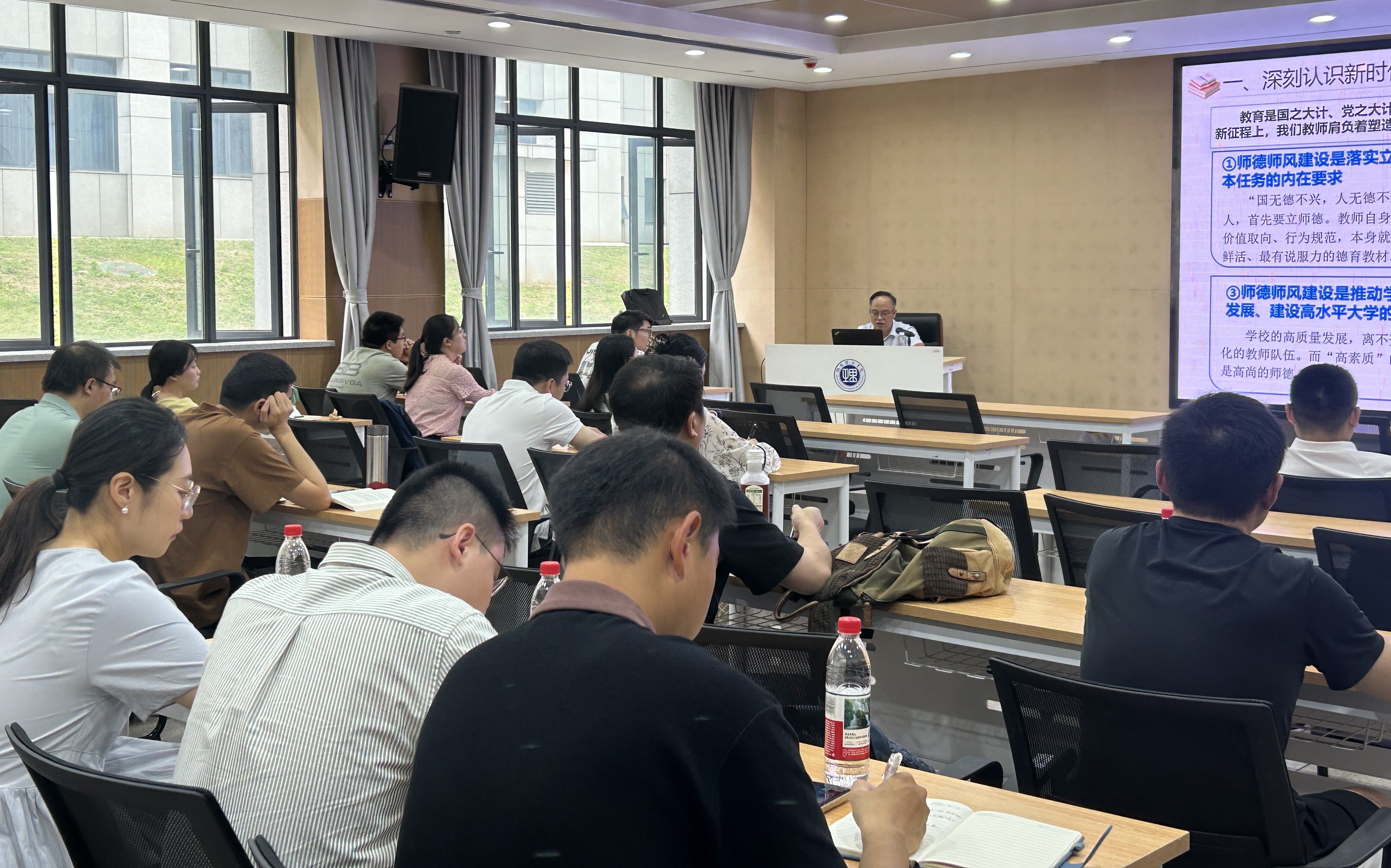 校园网讯 9月5日上午,我校举行2025年新进教师校本培训,校党委委员、副校长刘长辉以《立师德树师风,做四有好老师》为题作开班第一讲。刘长辉首先代表学校对新进教师的加入表示热烈欢迎。他指出,教师是立教之本、兴教之源,高素质的教师队伍是学校实现高质量发展、落实“立德树人”根本任务的关键所在。他从“深刻认识新时代师德师风建设的重大意义”“全面把握‘四有’好老师的深刻内涵与实践要求”“融入理工特色文化,践行...