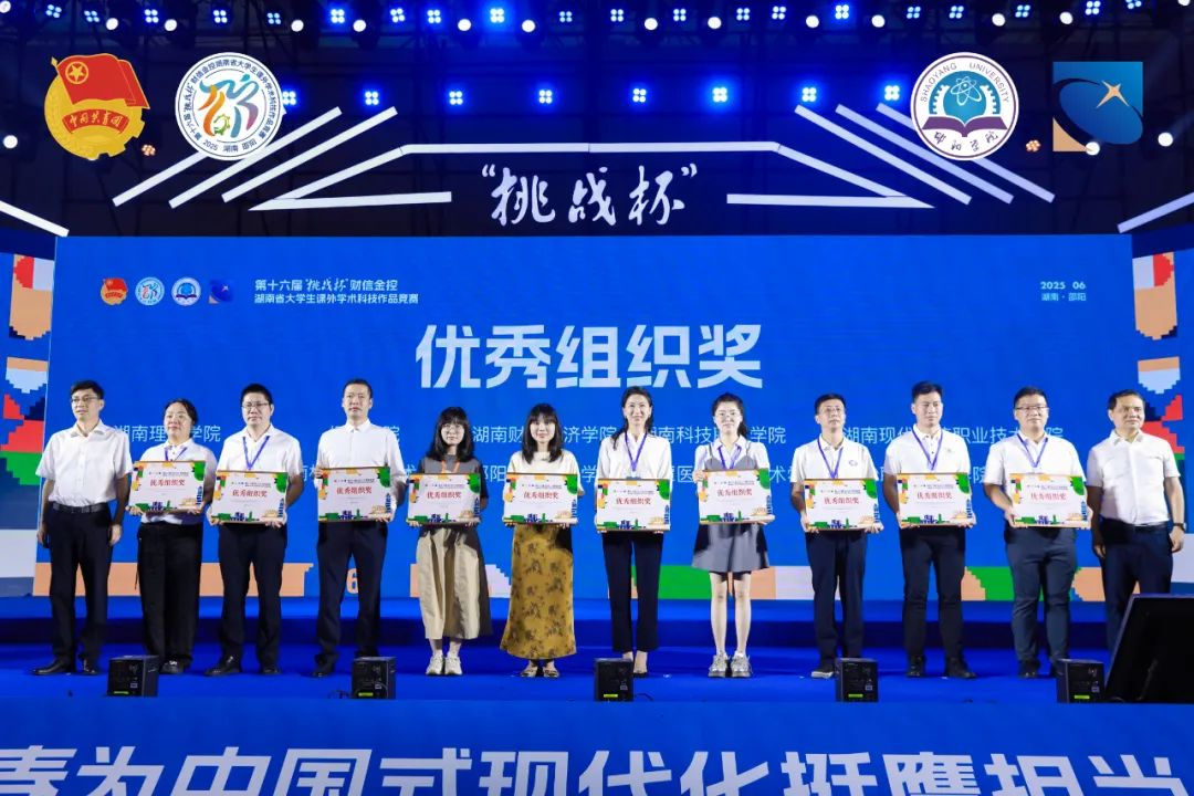 校园网讯6月13日,第十六届“挑战杯”财信金控湖南省大学生课外学术科技作品竞赛在邵阳学院举行。我校积极组织学生参赛,12支队伍在比赛中充分展现专业素养与创新能力,最终获得3项一等奖、9项二等奖的成绩,学校获评大赛“优秀组织奖”。本届赛事以“青春为中国式现代化挺膺担当”为主题,汇聚全省417件优秀作品、近2000名学生同场竞技。在决赛“7分钟陈述+3分钟答辩”环节中,我校参赛团队以详实的论证、扎实的专业能力完成展...