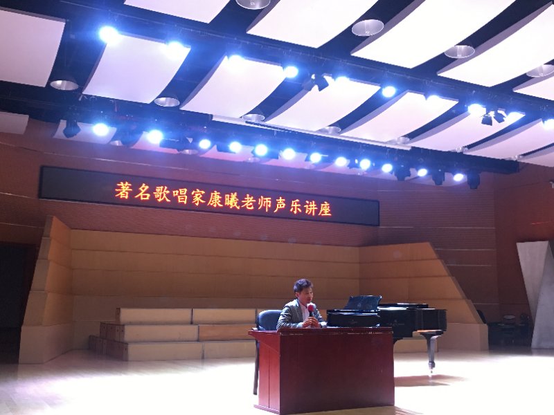 校园网讯 4月19日晚,著名男高音歌唱家康曦应邀在音乐厅举行“声乐演唱中常见问题的分析及解决”声乐演唱讲座,学校研究生院相关负责人、音乐学院及兄弟学院部分师生以及相关领域学者到场聆听,讲座由音乐学院副院长庞毅主持。