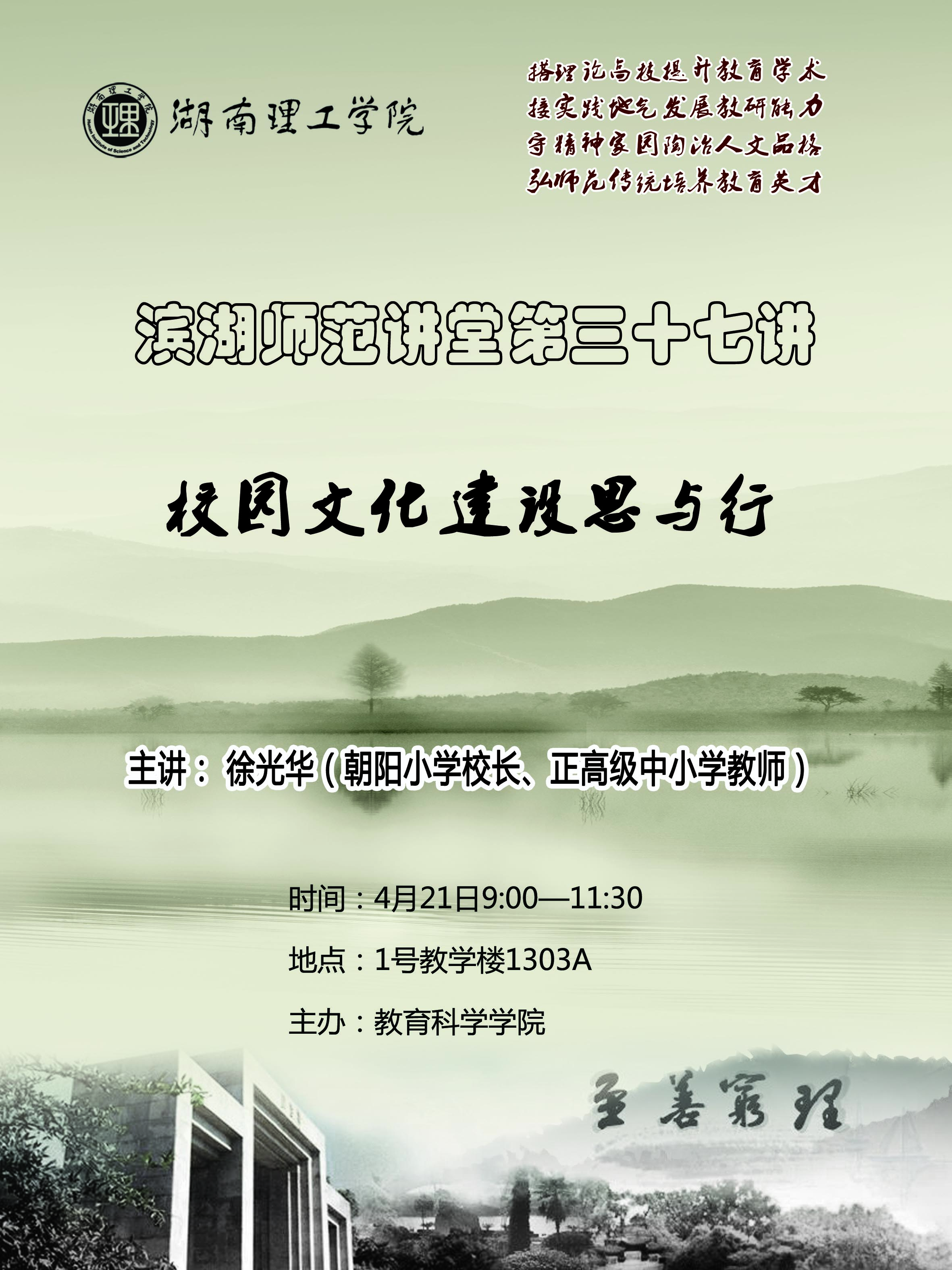 主题:滨湖师范讲堂第三十七讲——校园文化建设思与行