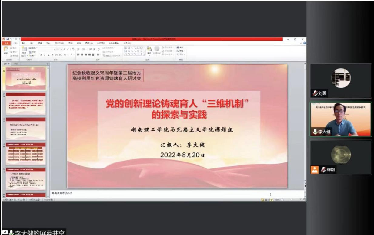 大会会期为一天,我校马克思主义学院全体老师通过线上方式参加了会议,马克思主义学院、期刊社负责人分别在大会上作主旨报告,对我校长期探索形成的教学成果“党的创新理论铸魂育人的‘三维机制’”进行了宣传和推广,介绍了我校利用红色文化育人的有效经验和做法。