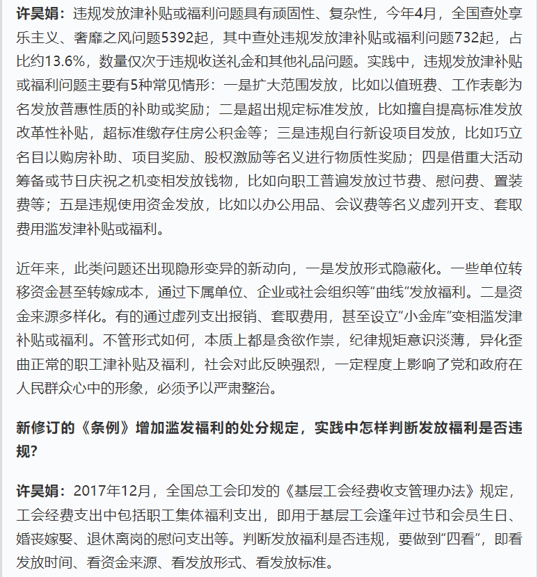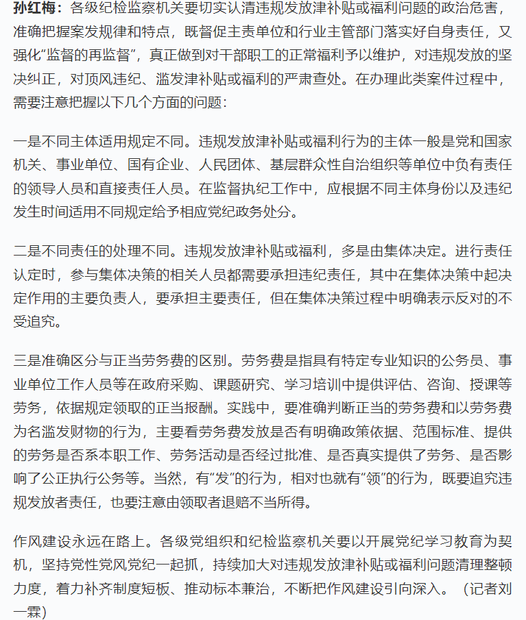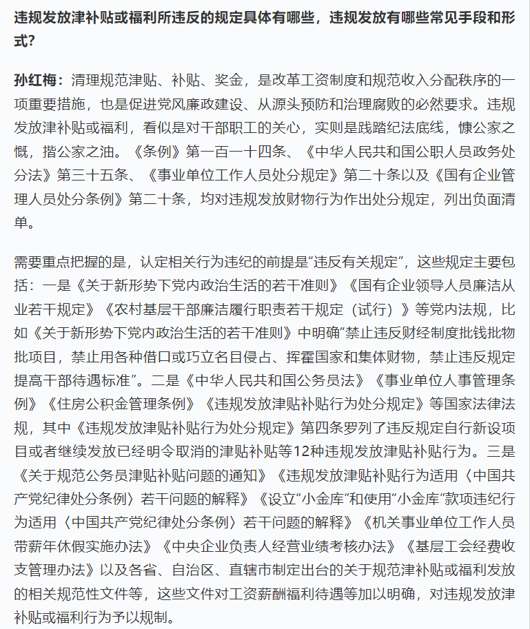 学习贯彻纪律处分条例|准确认定处理违规发放津补贴或福利问题