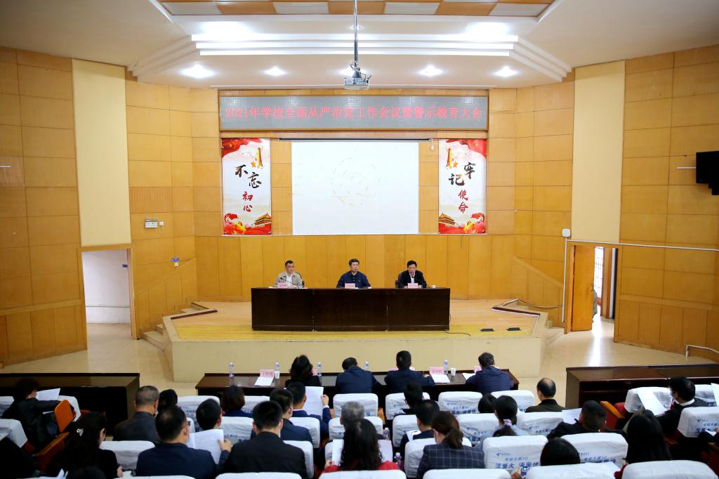 4月21日下午,学校召开2021年全面从严治党工作会议暨警示教育大会,深入学习贯彻十九届中央纪委五次全会、十一届省纪委六次全会精神和全省教育系统全面从严治党工作会议精神,回顾总结2020年学校全面从严治党工作,分析研判学校全面从严治党工作形势,部署安排2021年全面从严治党工作重点任务。党委书记卢先明出席会议并讲话,党委委员、纪委书记、监察专员谢贵辉作纪检监察工作报告。党委副书记、校长宁立伟主持会议。