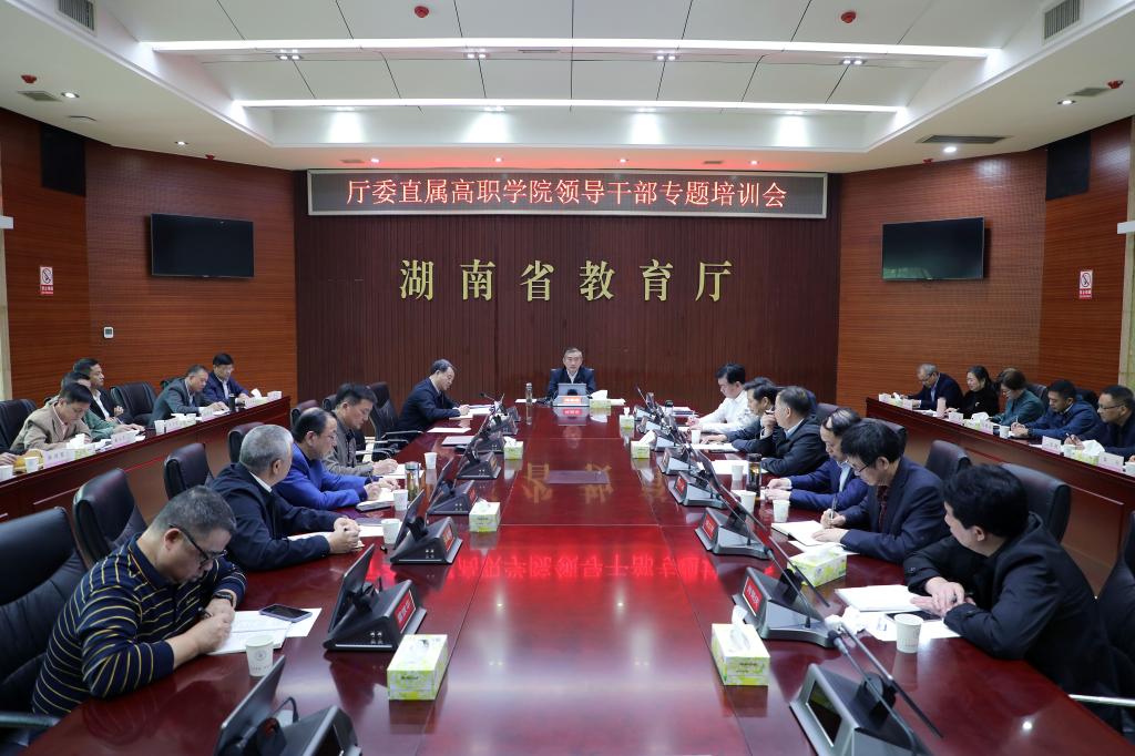 1 1月14日上午,省教育厅、省委教育工委组织召开直属高职学院领导干部专题培训会。省教育厅党组书记、厅长、省委教育工委书记蒋昌忠,省教育厅党组副书记、副厅长、省委教育工委副书记王瑰曙,省纪委省监委驻省教育厅纪检监察组组长、省教育厅党组成员、省委教育工委委员、一级巡视员曹世凯,省教育厅党组成员、省委教育工委副书记王建华主持会议。厅委10所直属高职学院的党委书记、校长和纪委书记参加会议,厅委有关处室负责人列席会议。我校纪委书记、监察专员谢贵辉受邀为培训会作专题讲座。