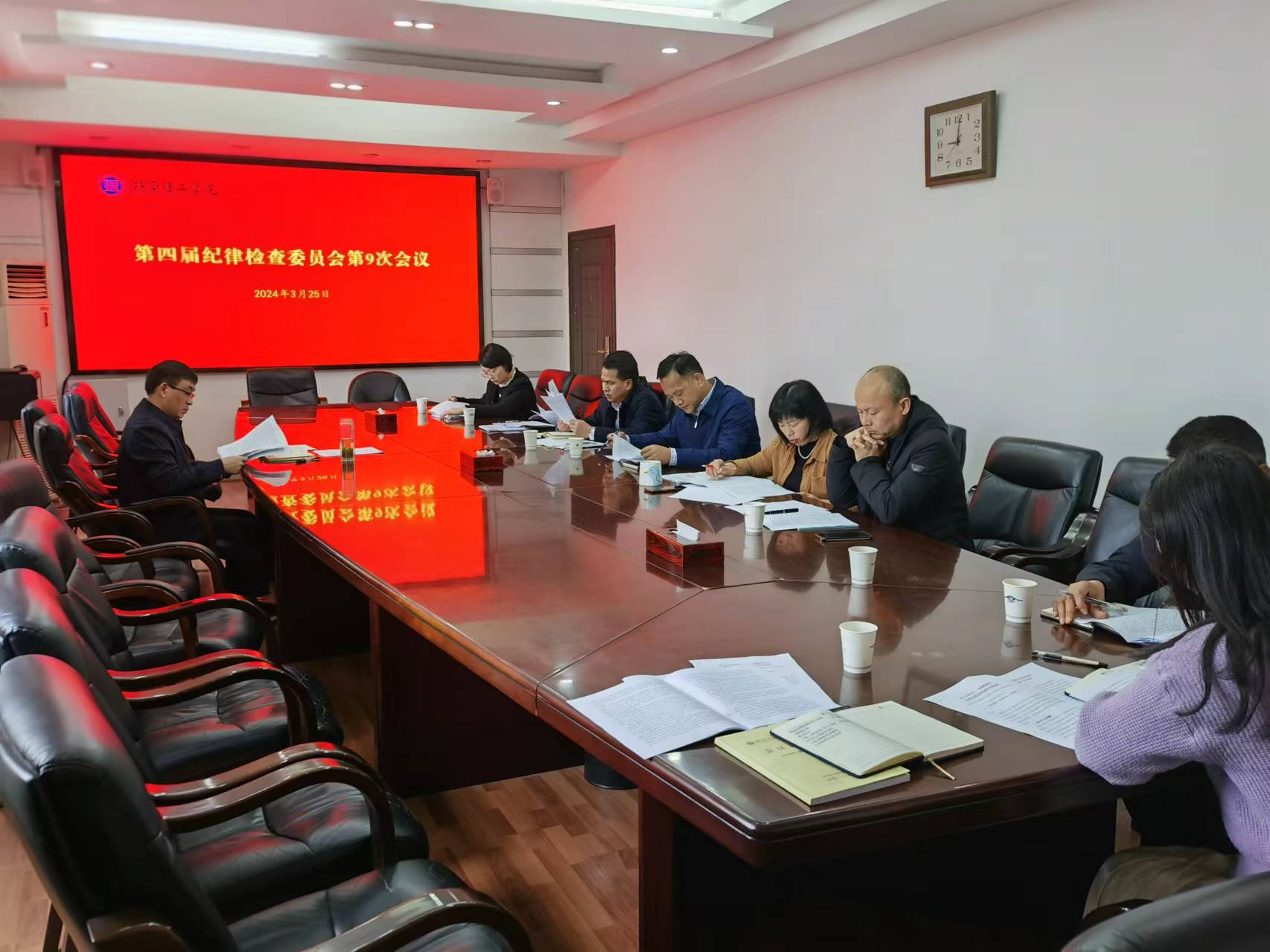 3月15日,学校纪委第四届委员会第9次会议在办公楼414会议室召开。全体纪委委员、专职纪检监察干部参会,校党委委员、纪委书记、驻校监察专员谢贵辉主持会议并讲话。
